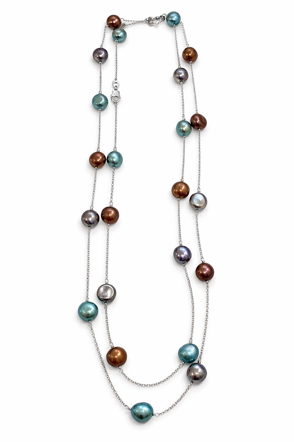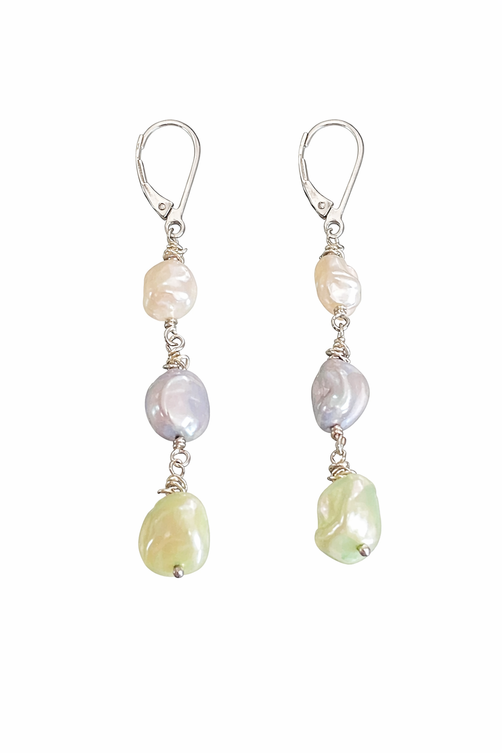 925 Sterling Silver Blue Freshwater Cultured Pearl & Mixed Gemstone Dangle Earrings